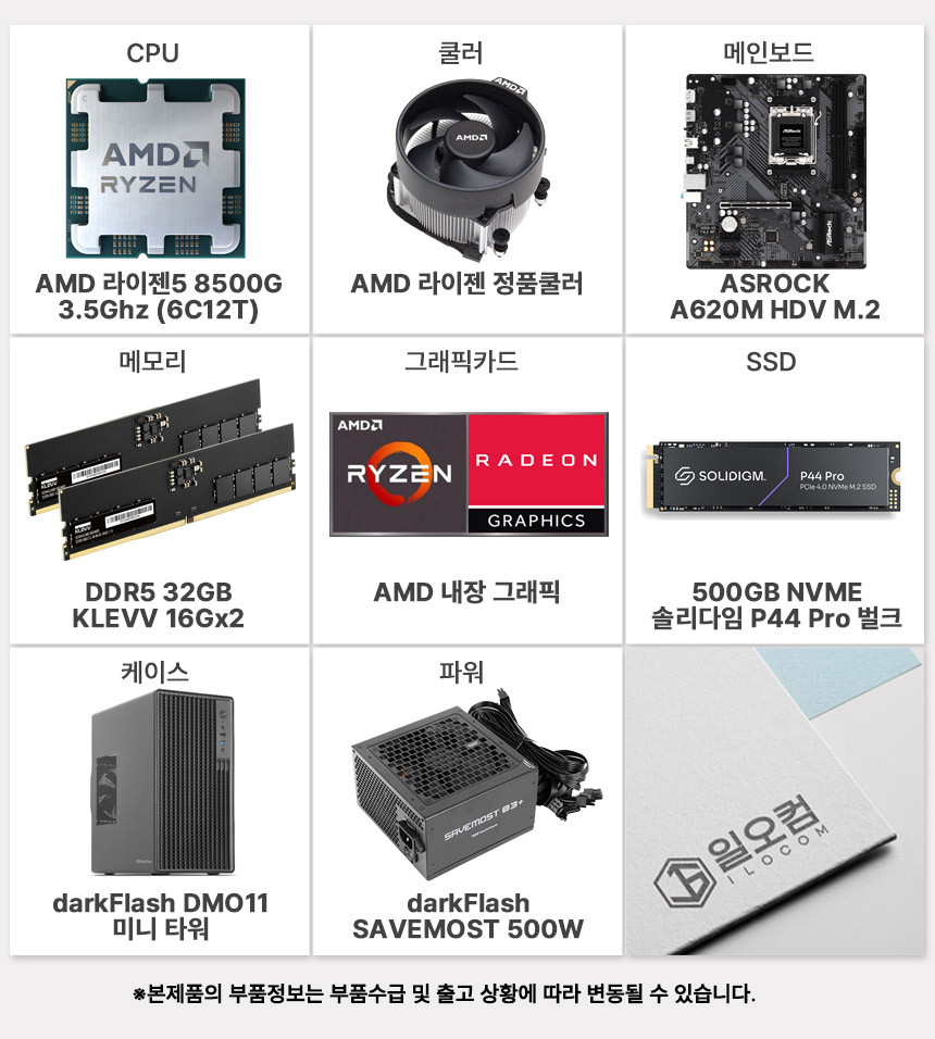 라이젠5 8500G, 솔리다임 P44 PRO 500GB, KLEVV DDR5 32G(16x2)
