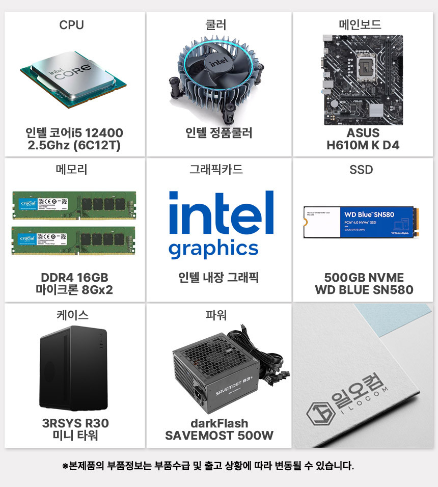 인텔 I5 12400, WD SN580 500GB, 마이크론DDR4 16G(8x2)